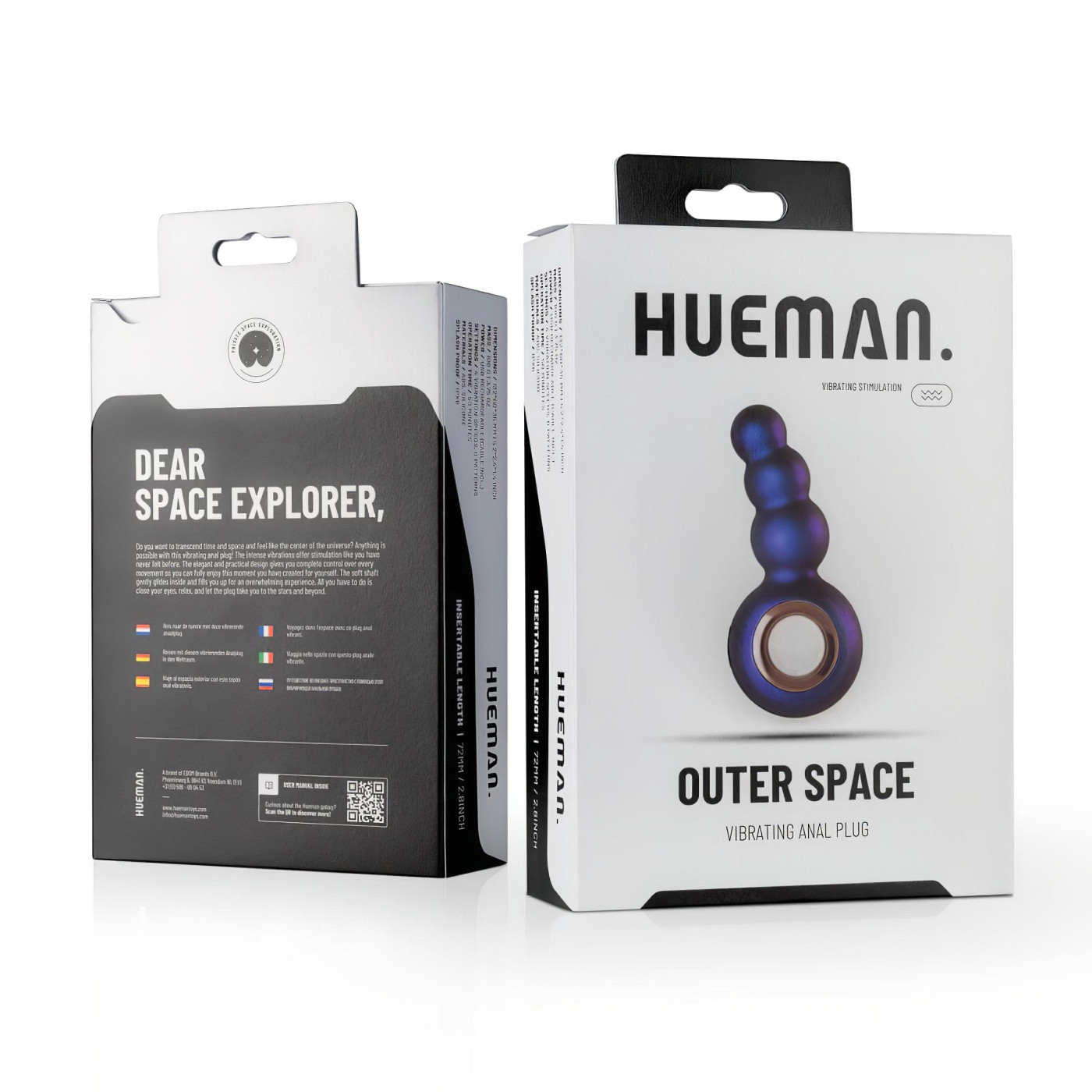 What's in the box: 1 anal vibrator 1 USB cable for charging Product specifications and features: Solid base, special matte effect silicone material Flexible neck Extra strong motor Unisex design 10 vibration modes Built-in USB rechargeable battery Total length (including ring): 13.2 cm Insertable length (up to ring): 7.2 cm Max diameter: 3.5 cm (widens towards the base) Ring dimensions: 5.8 x 5.8 x 3.2 cm Weight: 169 g Color: purple Material: ABS, Silicone (complies with EU regulations, phthalate-free) Charging time: 45 minutes Standby time: max 50 minutes Cleaning recommendation: Wash thoroughly with mild, soapy warm water, rinse and allow to dry. Recommended: Use of special cleaning agent (8718627520062) - available separately.