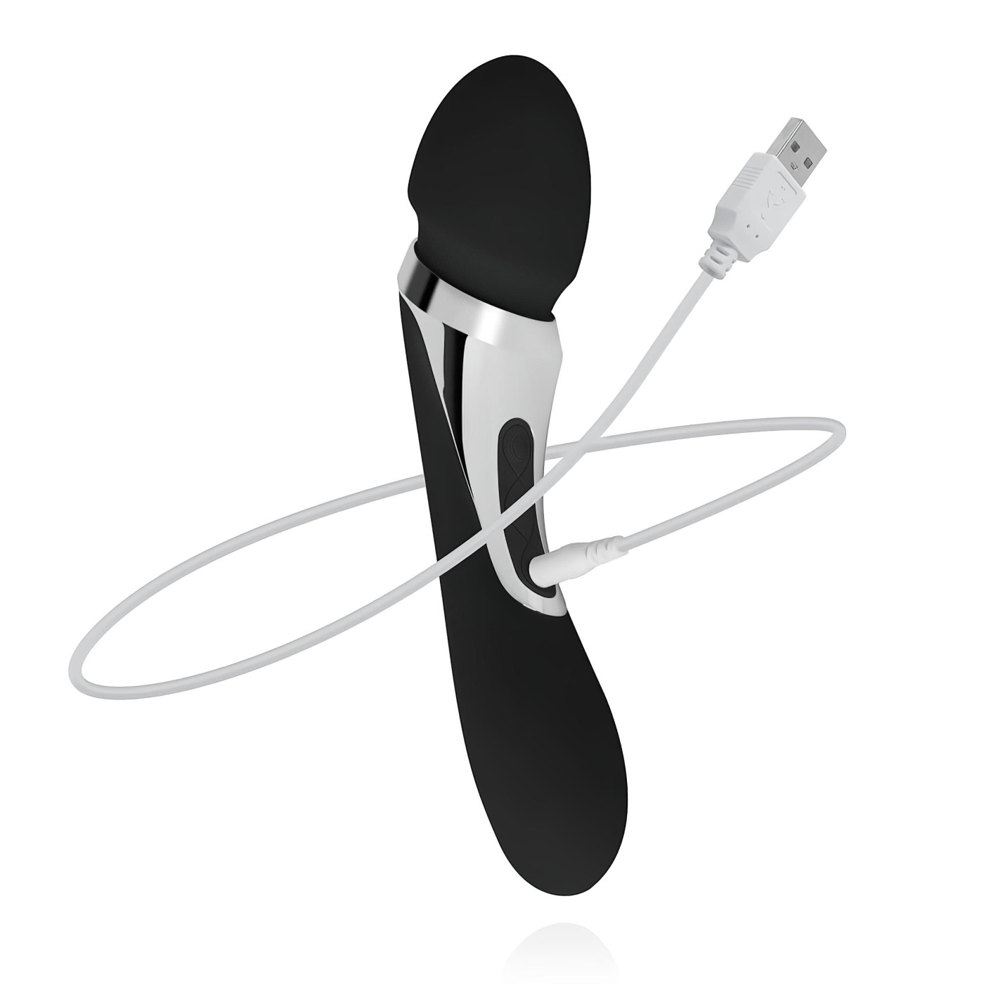 premium, skin-friendly material two powerful motors: one in the shaft, one in the head 7-7 vibration modes for each motor separately controllable motors built-in battery charging time: 60 minutes usage time: up to 1 hour waterproof design total length: 22.5cm min. diameter: 2.8cm max. diameter: 5cm (at the head) weight: 515g USB charging cable length: 75cm color: black, with silver details material: ABS, Silicone (compliant with EU regulation, phthalate-free) Package contents: