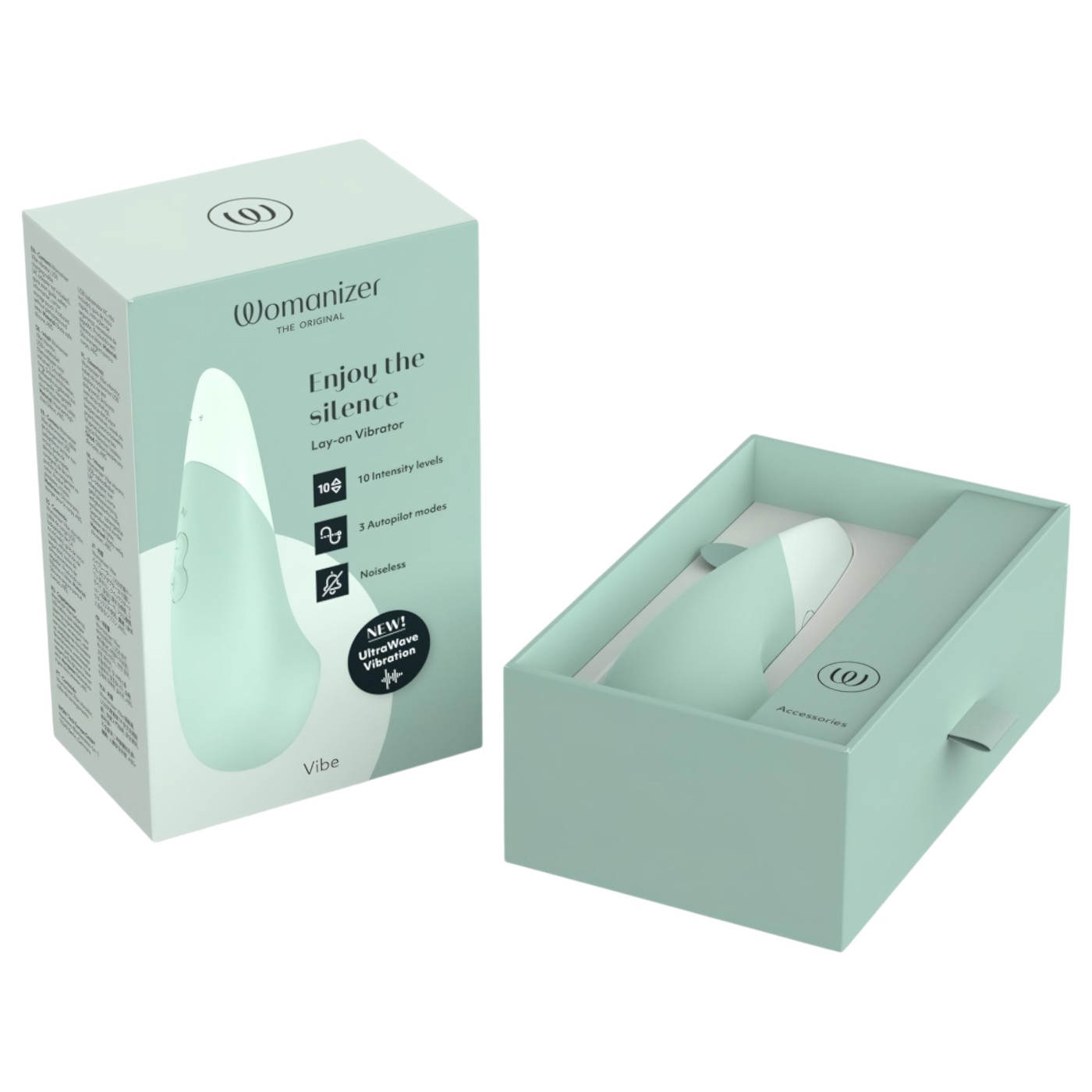 Why is it great? 100% orgasm guarantee! With Womanizer, an orgasm is fully guaranteed in less than a minute! Skin-friendly - a great choice for those with sensitive skin or allergies Super quiet - engineered by Womanizer to achieve strong vibrations with minimal noiseUltraWave vibrations - deep, rumbling vibrations for more intense orgasms without overstimulationUnique shape - designed to target vibrations precisely to the clitorisAutopilot mode - enjoy one of the 3 pre-set vibration modes inspired by music themes10 intensity levels! 100% waterproof - can be used in the bath or shower, easy to clean Built-in battery - no need to worry about replacing batteries Not satisfied with your Womanizer clitoral stimulator? Return it within 30 days, even if used, for a full refund! Who do we recommend it for? The Vibe allows you to focus solely on pleasure without worrying about who might hear. Its silent motor gives 100% confidence for self-pleasure, ideal for busy moms and those living with roommates!